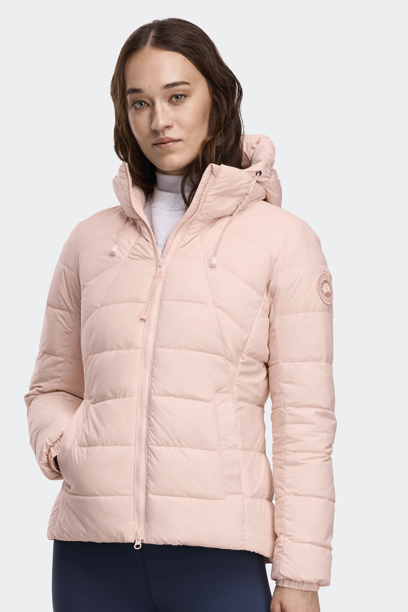 The Abbott Hoodie is crafted from Recycled Feather Light, an abrasion-resistant fabric with a subtle shine that delivers water-repellent, wind-resistant protection. The down-filled hood features an adjustable drawcord that tucks away for a clean look.