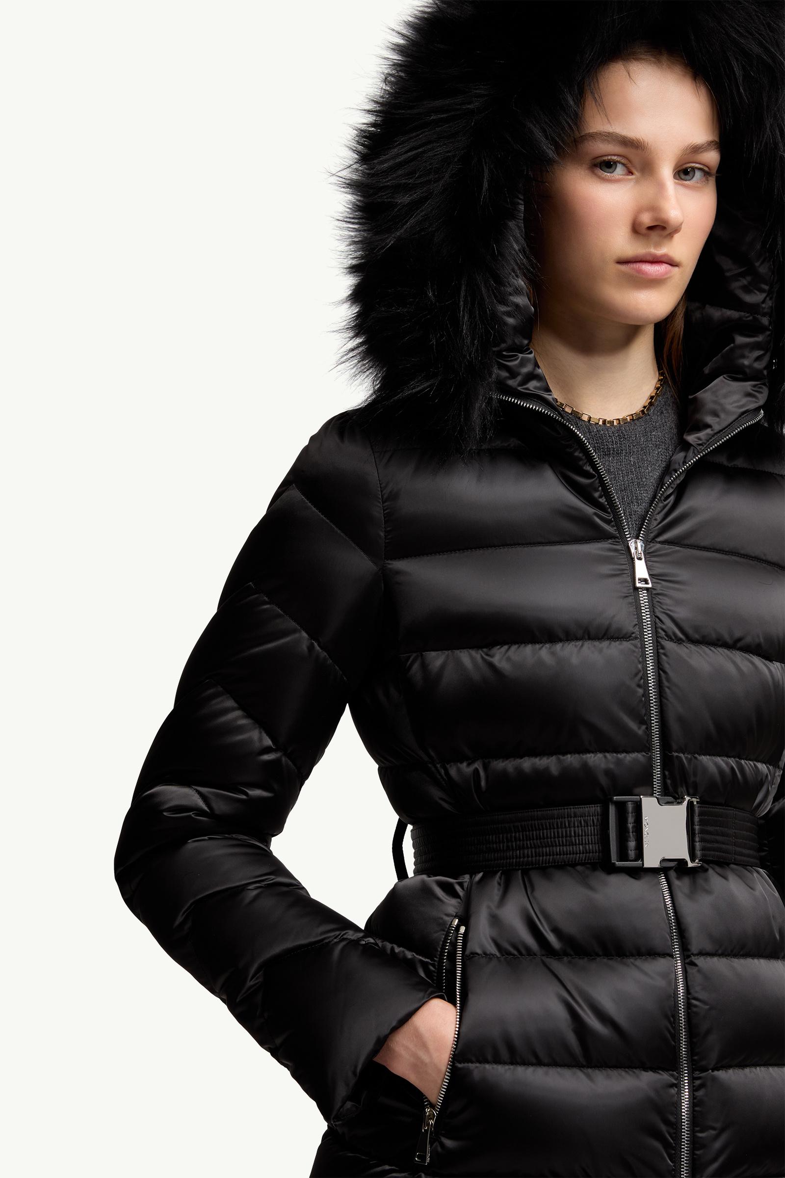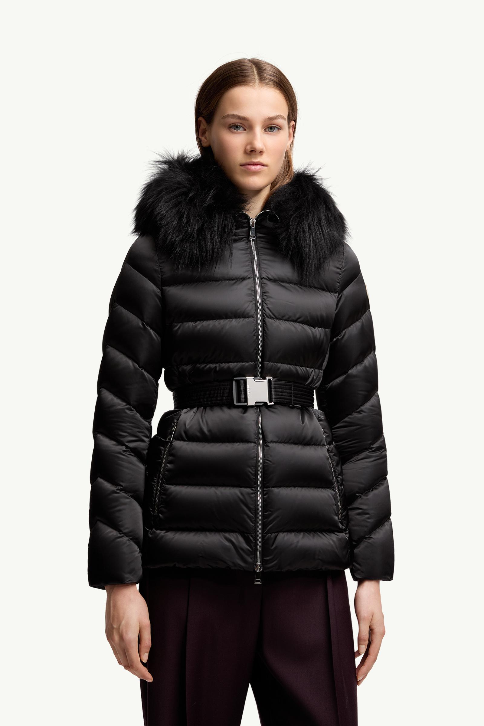 Luxury and protection characterize the women's Cupidone down jacket, crafted from satin and adorned with a long-haired sheepskin trim.