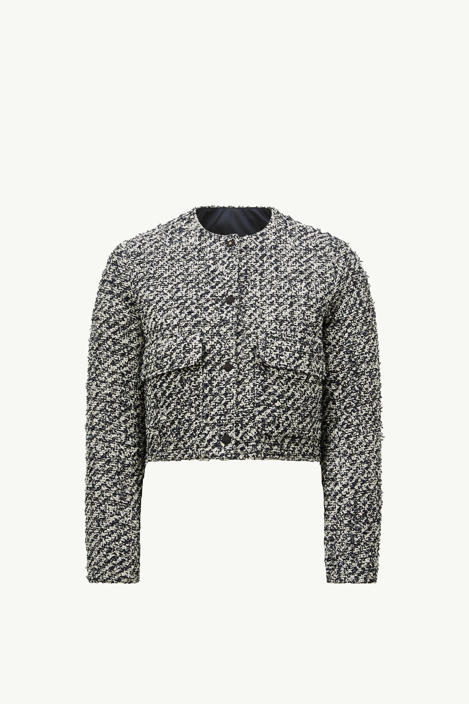 Emblematic of comfortable elegance, the Dauphin short down jacket for women is crafted from soft tweed.