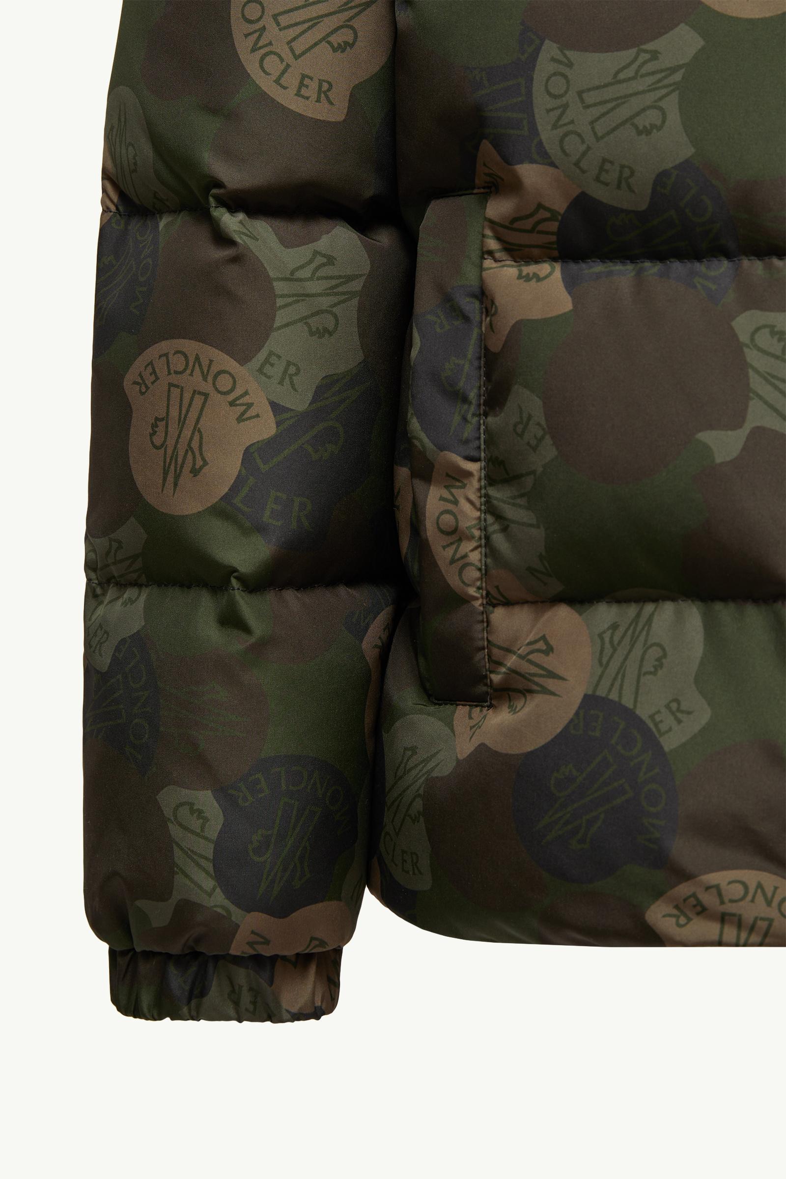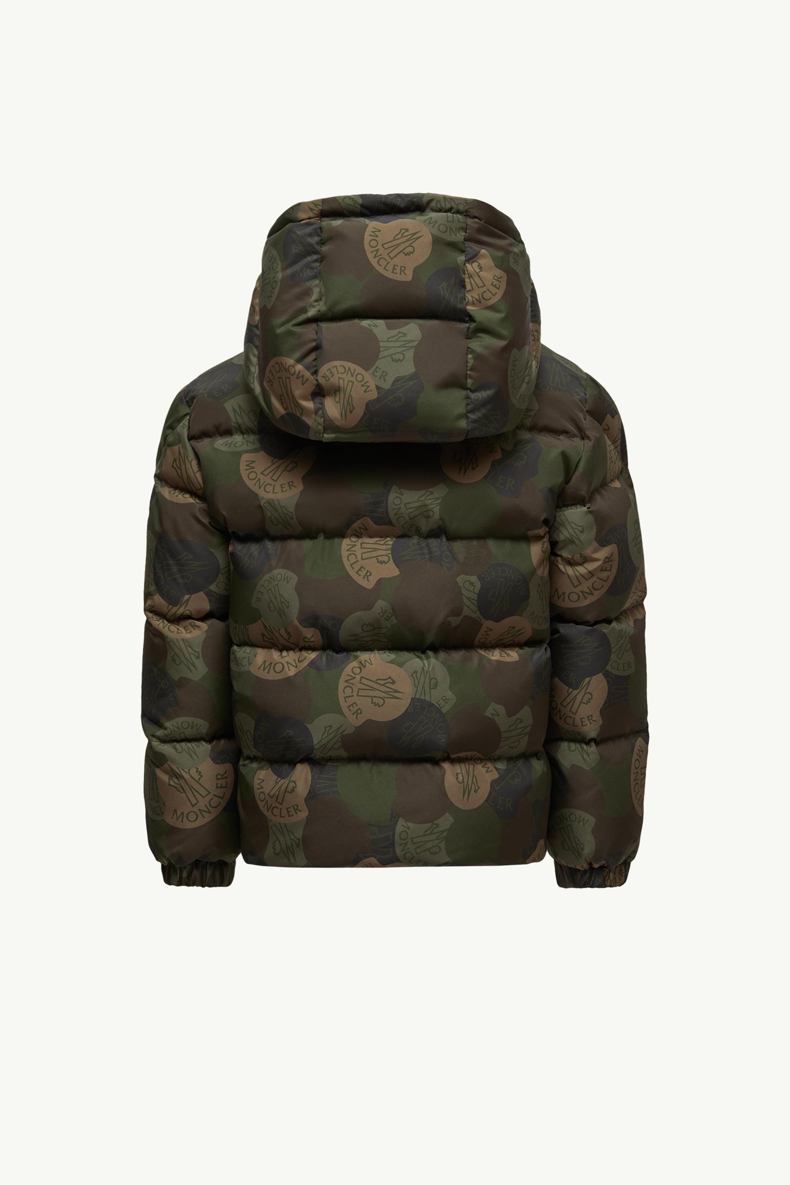 A rugged design, the Escer down jacket for boys boasts a bold earth-toned logo print.