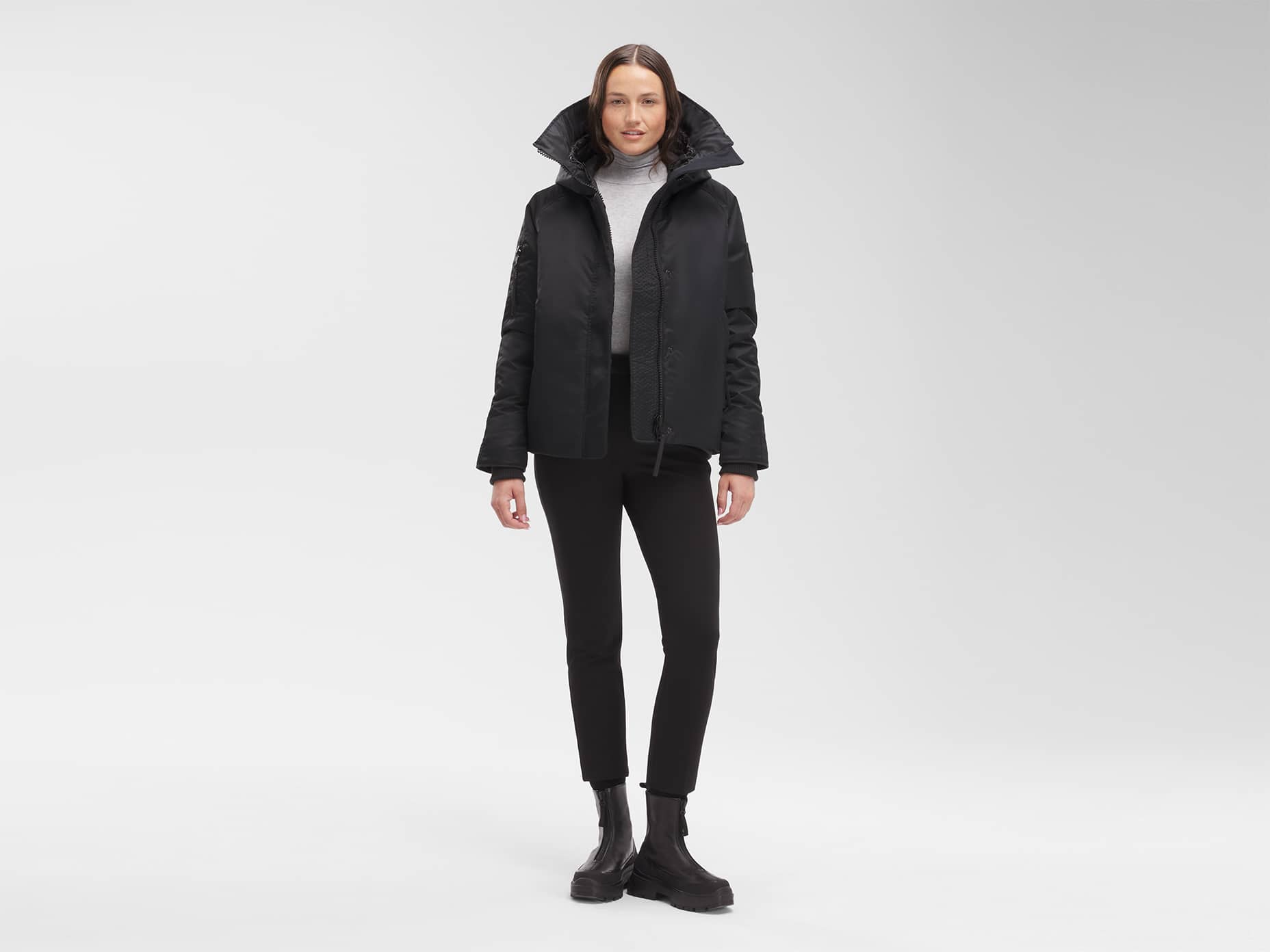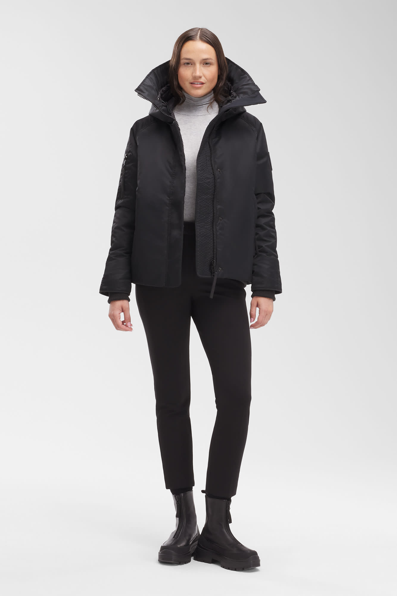 Featuring our durable and ultra-soft Performance Satin fabric, the Everleigh Bomber will take you through frigid conditions in comfort. The Everleigh has a snorkel hood, interior backpack straps and reflective details for added visibility in low light.