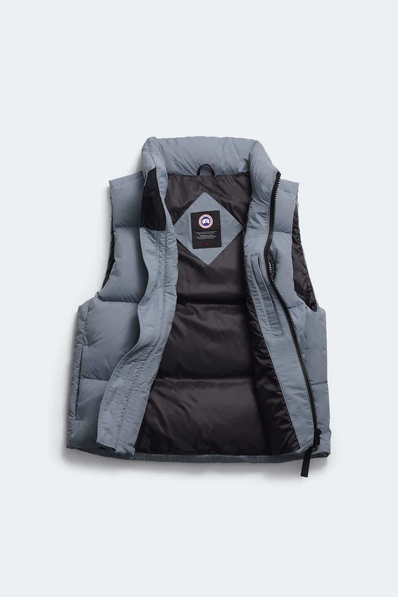 The Lawrence Puffer Vest is crafted from Recycled Enduraluxe, a water-repellent fabric with a durable finish. Featuring a structured down-filled collar, a two-way zipper, and a longer back hem for added coverage.