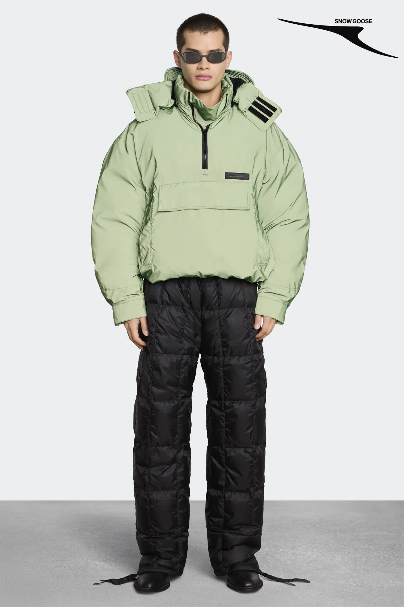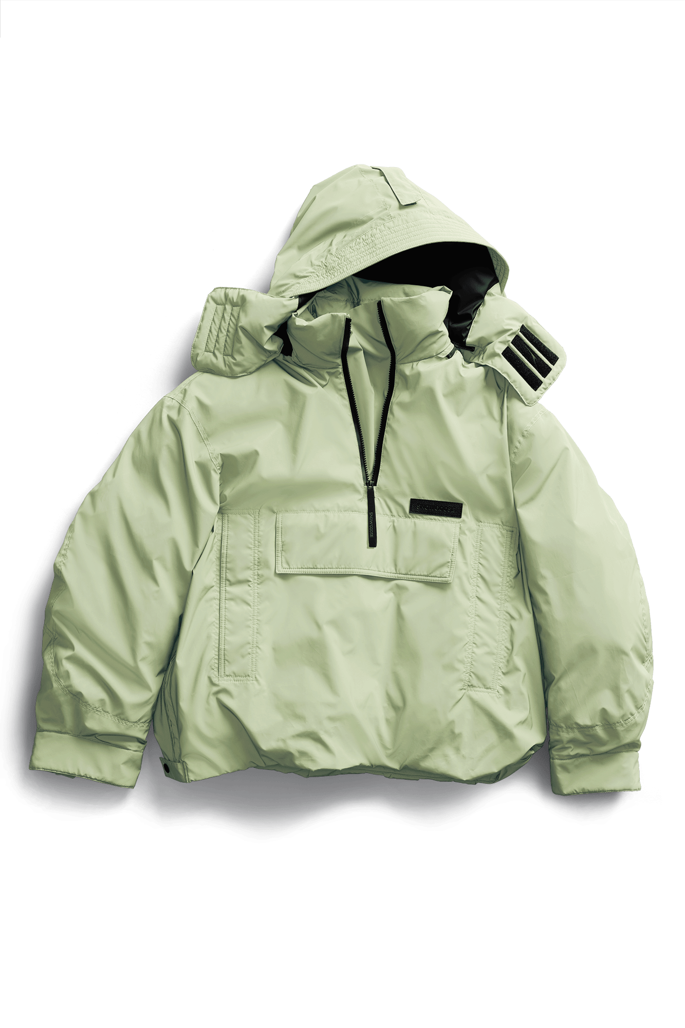 The pullover Shift Anorak was inspired by an archival anorak from 1990. It’s been modernized with front pockets—two welt and one flap—and a zip-off removable hood.